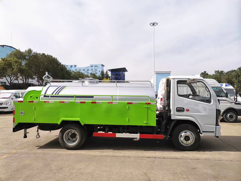 上装配置:容积4.5方,天津通洁170流量高压泵,240公斤压力,尾部液压卷盘可旋转180度,带内径¢19 PVC 夹层钢丝管60-100米高压管,不同用途组合喷头10个,适用于不同管道的清洗与疏通(可疏通 800mm 以内市政管网)。 该车可加装洒水功能,用于园林绿化,喷雾降尘道路清洗等。车身紧凑,独立罐体。罐体有效容积可达 4.5m³, 外形美观;独立系统,操作简便,性能良好。