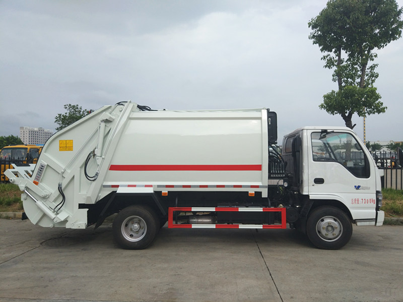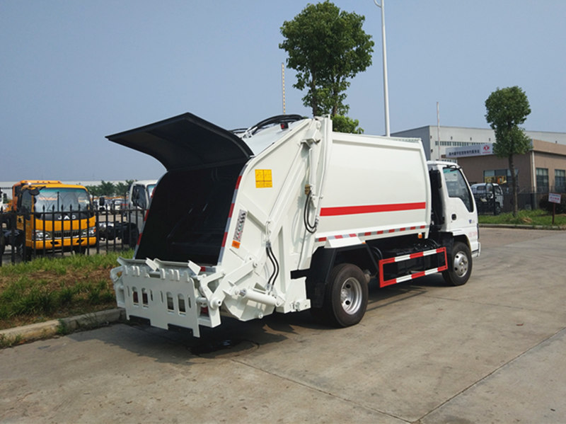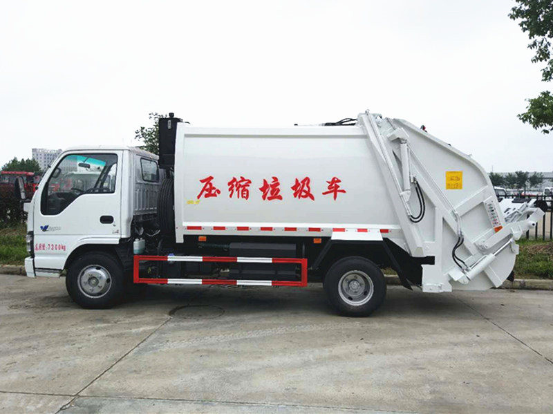 五十铃压缩垃圾车优点:带原装空调,五十铃发动机故障率低,使用过程中噪音小,小区使用的首选车型。