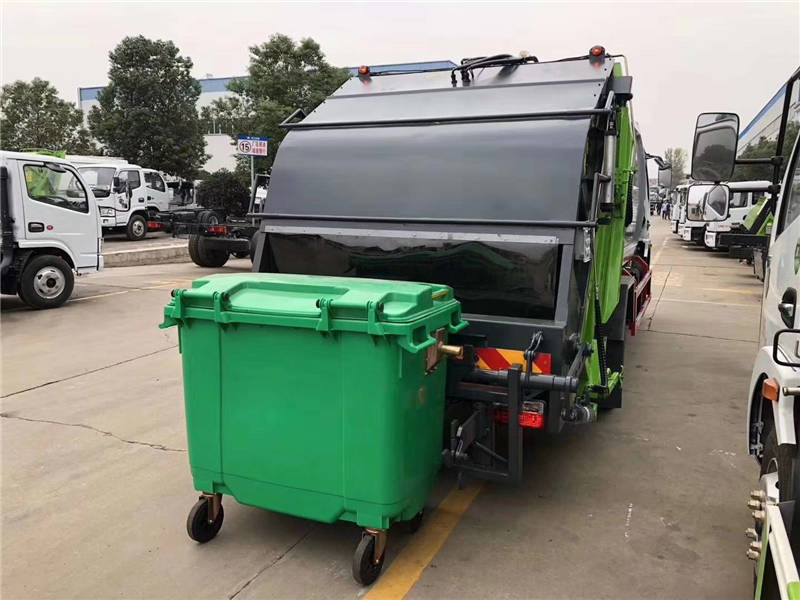 上装配置:弧形箱体,容积8立方,采用T420特种钢板制作,箱体底板4mm,边板4mm,中联配套液压缸,江苏中梅多路阀,长源液压泵,填装器举升油缸带双向平衡阀,采用西门子PLC电控系统(带一键操作和手动操作两种控制方式),操作盒共三只(驾驶室内部及时尾部左右两个均可操作),后填装器标准下部一只污水箱,底盘大梁一侧一只污水箱,尾部配填充器,后部带翻转架,尾部安装夜间照明灯。随车附件:随车工具,合格证,上户发票。尾部带密封盖,尾部可翻转240升与660升垃圾桶。