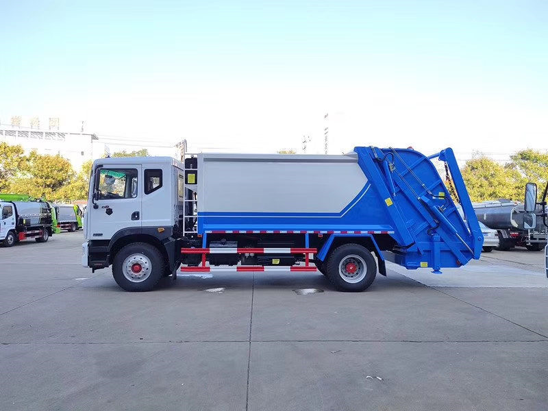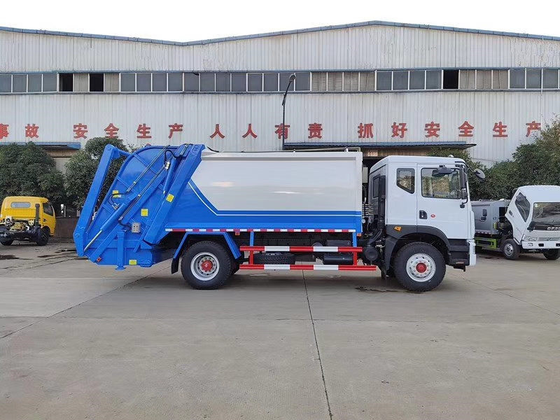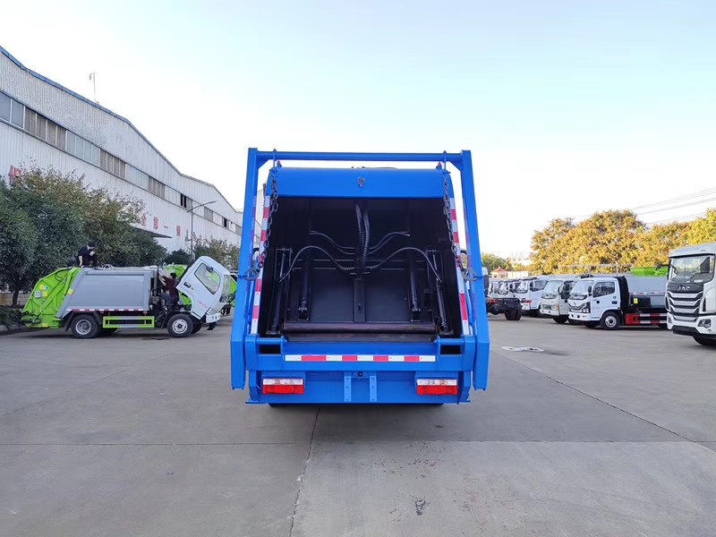 上装配置:新款弧形箱体,靓丽美观,材质采用Q345高强度锰钢板制作,厢体容积:12立方米,可装32立方散装垃圾,大流量液压泵,大流量手自一体多路换向阀,可编程PLC电控系统带无线遥控器操作系统,双污水厢,双向压缩,卸料时带一键循环系统,司机不下车可完工卸料工作。尾部选装翻摆臂斗机构,选装遥控器操作。此车配置摆臂斗,可选装,翻转架、翻转斗、落地斗。