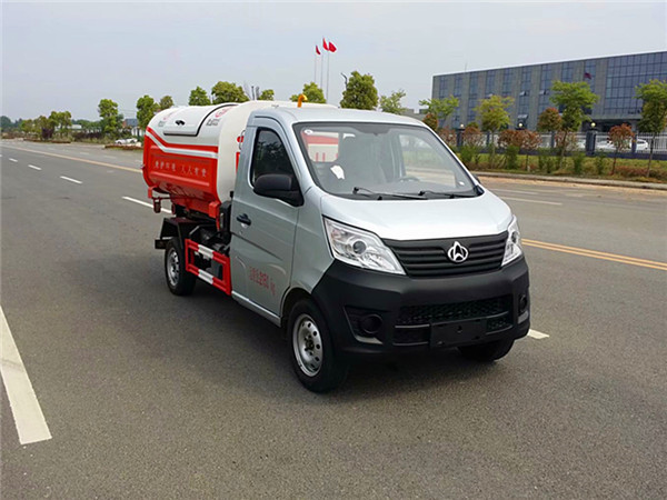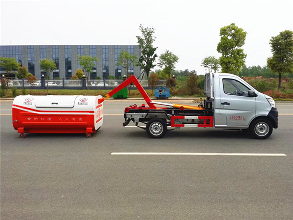 勾臂垃圾箱:随车配勾臂垃圾箱一个,厢体(3-5立方)采用武钢产Q235优质碳钢板制作,边2mm底3mm,内部做防腐防锈处理,箱体两侧开投料窗口,配手动撑杆、选用液压支杆,箱尾设有挡水槽,尾门有3毫米厚的密封条,箱底带滚轮,垃圾箱尾部开口处装有快速锁紧装置,卸倒垃圾时只需轻轻一提尾门便可开启。