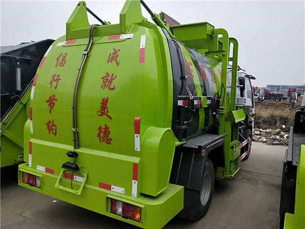 上装配置:全新款式箱体工艺,有效容积4.5立方米,车身右侧配液压挂桶提升机构,可挂国标240升垃圾桶,液压完成提桶倾倒作业,尾门为液压开启锁闭装置,可保证滴水不漏,箱体内部设有液压推板,可装垃圾推出卸料,带固液分离装置,标配液压马达带高压柱塞泵,配移动高压清洗枪。选装密闭式绞龙卸料装置、选装不锈钢材质箱体、选装罐内加热装置。
