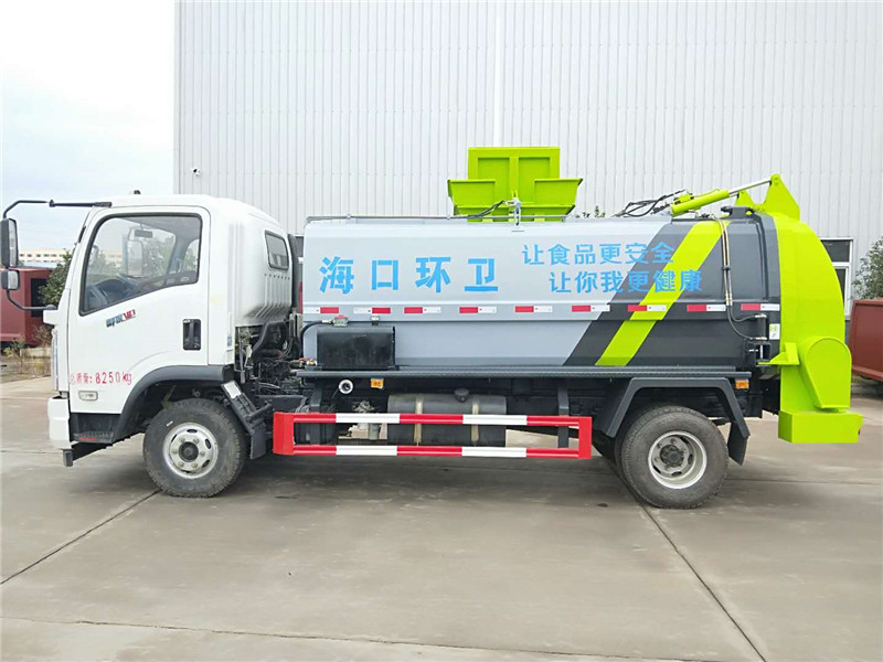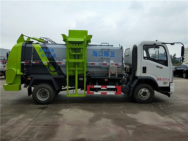 上装配置:全新款式箱体工艺,有效容积4.5立方米,车身右侧配液压挂桶提升机构,可挂国标240升垃圾桶,液压完成提桶倾倒作业,尾门为液压开启锁闭装置,可保证滴水不漏,箱体内部设有液压推板,可装垃圾推出卸料,带固液分离装置,标配液压马达带高压柱塞泵,配移动高压清洗枪。选装密闭式绞龙卸料装置、选装不锈钢材质箱体、选装罐内加热装置。