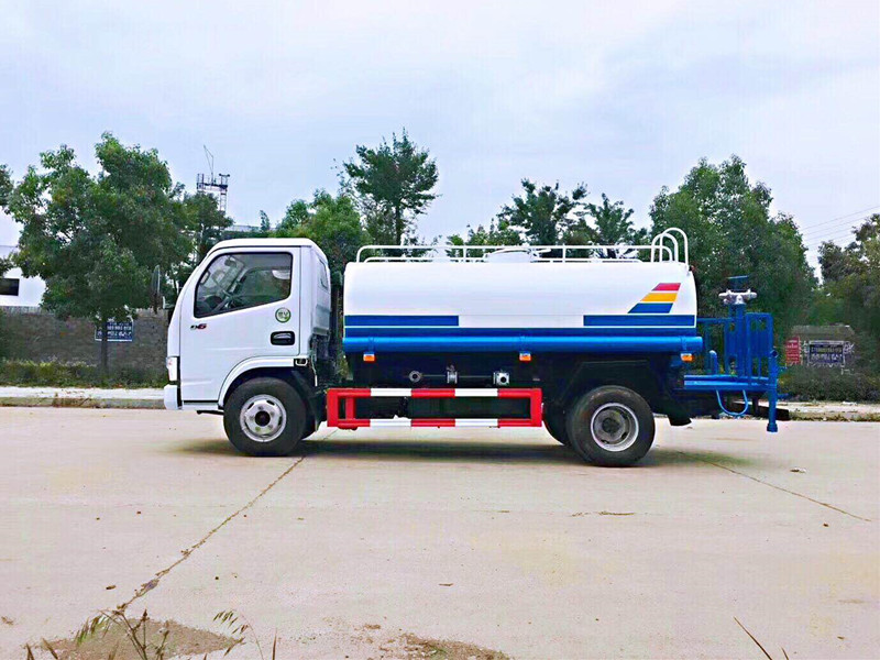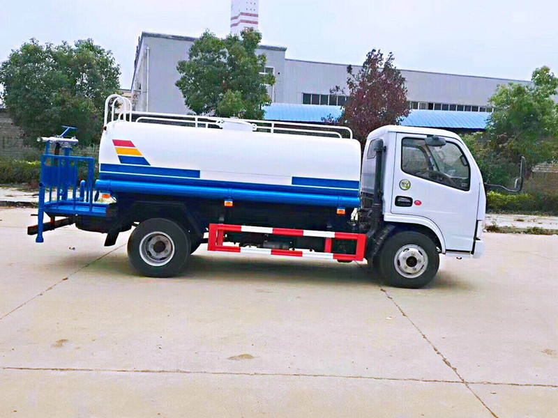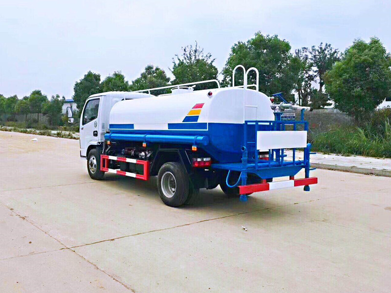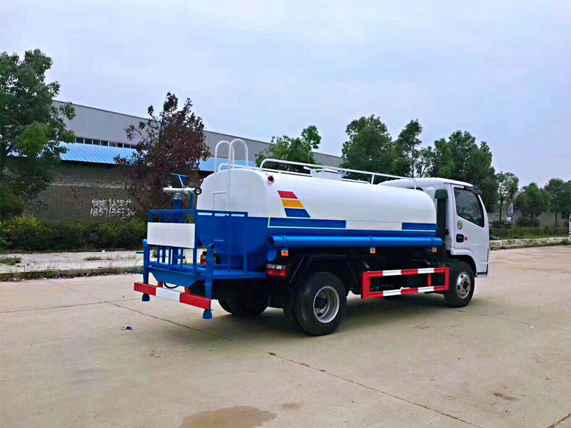 上装配置:罐体容积为5立方洒水车,新款工艺罐体,厚度为4mm碳钢Q235材质,罐内隔板具有防波作用,以减轻汽车行驶时罐体液体冲击,罐体及整车外形尺寸按照公告。带大功率专用洒水泵,泵可自吸自排,整车前冲、后洒、侧喷、带65消防接口,后平台带绿化洒水炮,洒水炮可全方位旋转,可连续调成直冲状、大雨、小雨、毛毛雨;前封头带水位计,后平台主管路带1寸浇花接口,后爬梯。平台后部带小安全告知牌:“随时停车,注意安全”,带两根水管及阴阳端。罐体颜色:上白/下蓝,银灰/银蓝,罐体两侧喷“洒水车、绿化洒水车”字样,贴反光标示。洒水车可加装前冲后洒气动阀驾驶室控制、可加装雾炮机组发电机组喷雾降尘装置、车头可加装推雪雪铲、雪滚装置街道、公路除雪等。