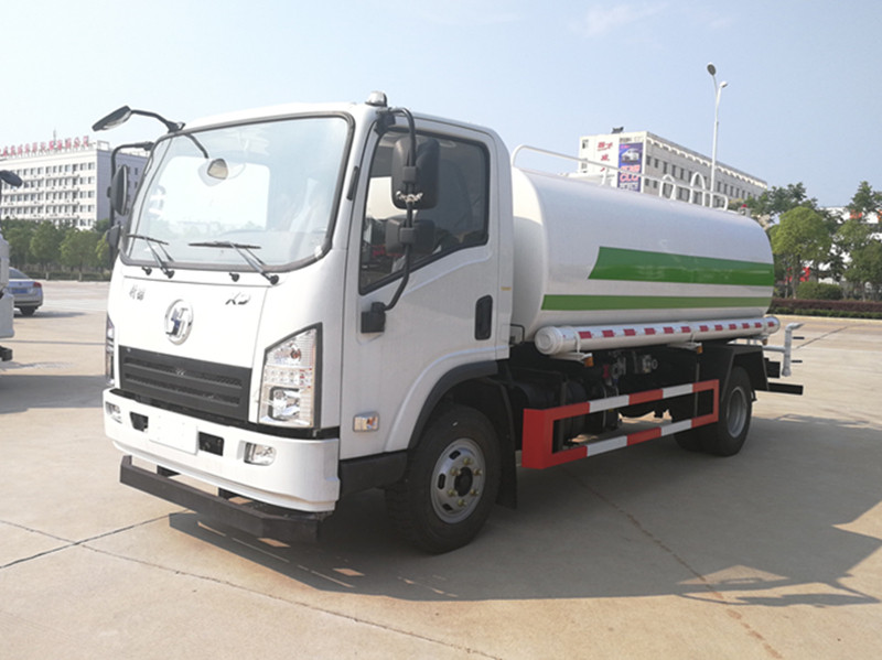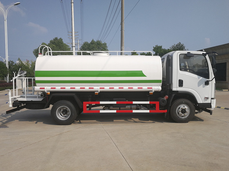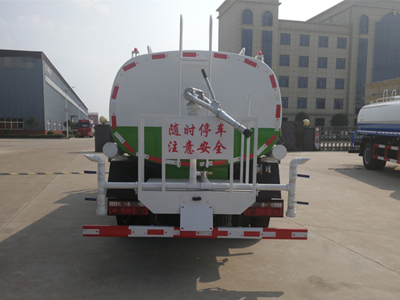 上装配置:罐体采用4mm厚武钢优质碳钢板制作,前(喷)后洒,带侧喷,罐体后带工作平台,平台上安装绿化洒水炮,洒水炮可360°旋转,可连续调成直冲状、大雨、小雨、毛毛雨,带安全护栏,配大功率专用洒水泵,泵可自吸自排,安装过滤网,带消防接口,可通过消防栓进水,带自流阀。洒水车驾驶室自动控制系统,驾驶室内操作,降低劳动成本,操作方便,提高工作效率。