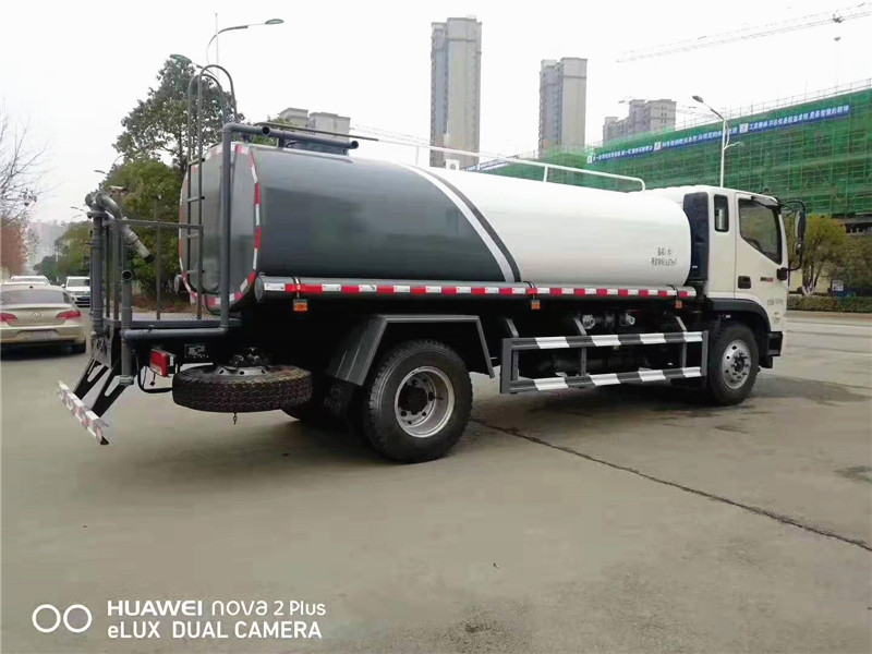 上装配置:罐体容积12m³,罐体壁厚4mm,威龙60/90大功率水泵,主管道3寸,副管道2寸半,前万象对冲,前万象直冲,后洒,侧喷,高炮,高位花洒,垂直吸程≥6米,洒水宽度≧14米,射程≧30米,扬程90米,带后工作平台、平台上安装绿化洒水高炮(炮喷射形状可调节:直冲、大雨、中雨、毛毛雨、雾状、可连续调节,360°旋转).