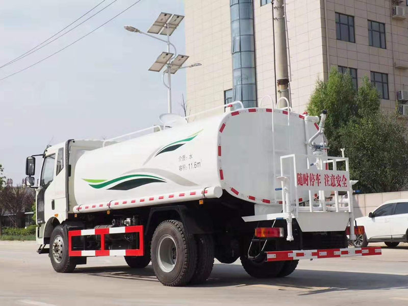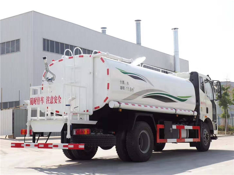上装配置:罐体容积为14立方洒水车,罐体钢板为4mm碳钢Q235材质,罐内隔板具有防波作用,以减轻汽车行驶时罐体液体冲击,罐体及整车外形尺寸按照公告。带大功率专用洒水泵,泵可自吸自排,整车前冲、后洒、侧喷、带65消防接口,后平台带绿化洒水炮,洒水炮可全方位旋转,可连续调成直冲状、大雨、小雨、毛毛雨;前封头带水位计,后平台主管路带1寸浇花接口,后爬梯。平台后部带小安全告知牌:“随时停车,注意安全”,带两根水管及阴阳端。罐体两侧喷“洒水车、绿化喷洒车”字样,贴反光标示。