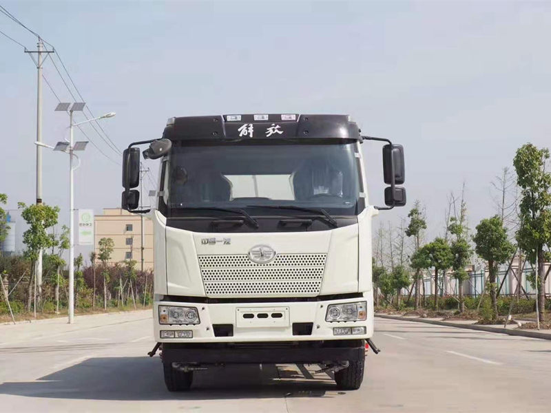 底盘配置:解放半浮平顶小排半驾驶室,4500轴距,一汽190马力发动机,六档变速箱,10.00R20钢丝胎,ABS,断气刹,空调。
