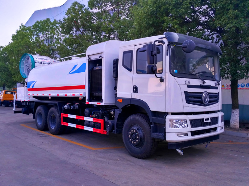 上装配置:罐体有效容积16吨,内部做防腐防锈,配大功率洒水泵。标配:前冲、后洒,侧喷,平台高炮,自流阀和消防接头各1个,具有洒水车的全套标准功能,完美的实现了一车两用的效果。