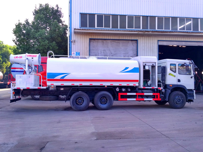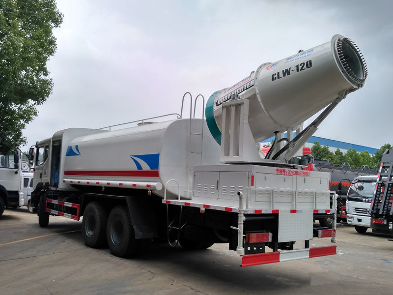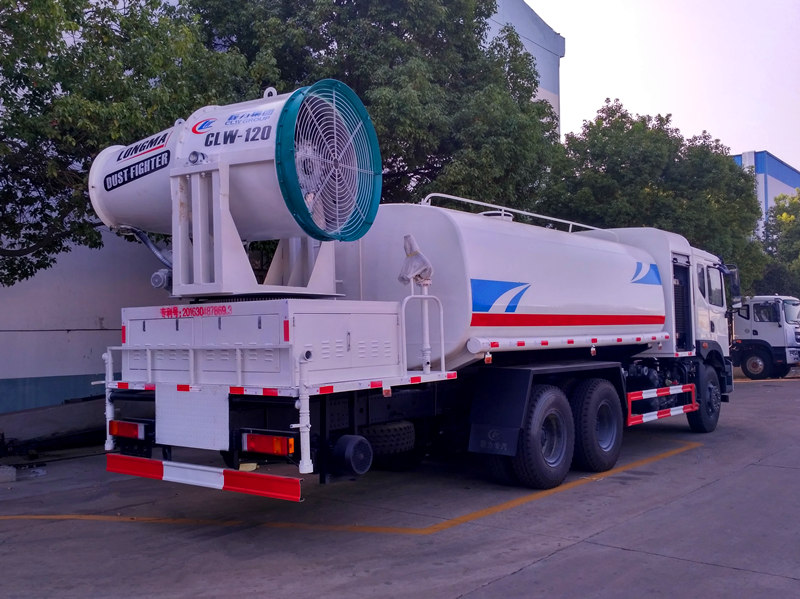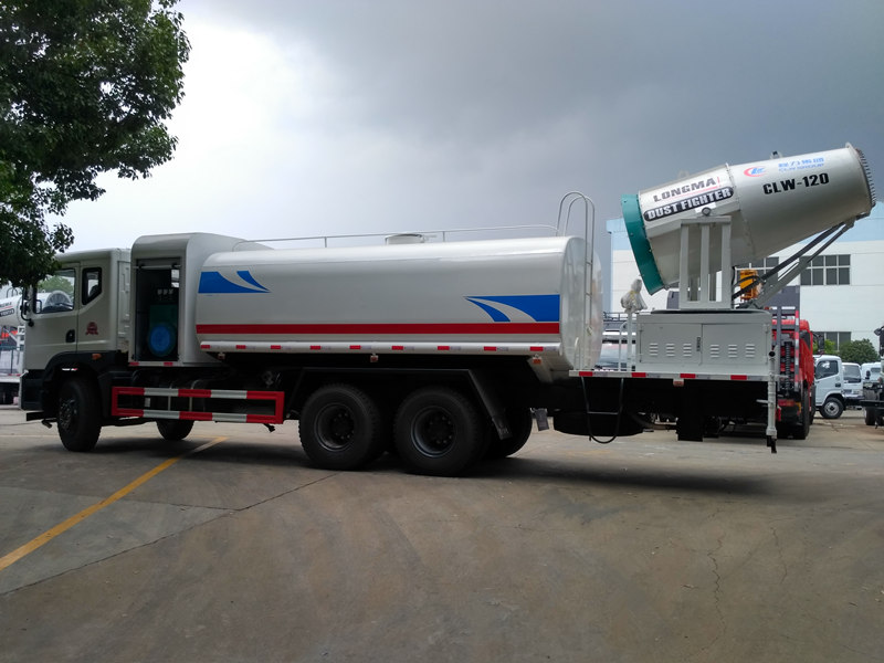 雾炮参数:雾炮射程从60米到120米,可随意选择,射程不同,价格也不同。雾炮自带柴油发电机组,标配100米以内摇控装置,可360度摇控旋转,达到全方位大面积精准喷雾,经环保部门测试,雾炮车可以将空气中的PM10浓度降低20%左右。该车负载的大型雾炮喷雾流量平均每分钟50-150升水。同样10吨水,该款新型雾炮车的洒水时间是普通洒水车的10-15倍,在雾霾天气可以进行液雾降尘、将漂浮在空气中的污染颗粒物迅速逼降地面,达到净化空气的效果。
