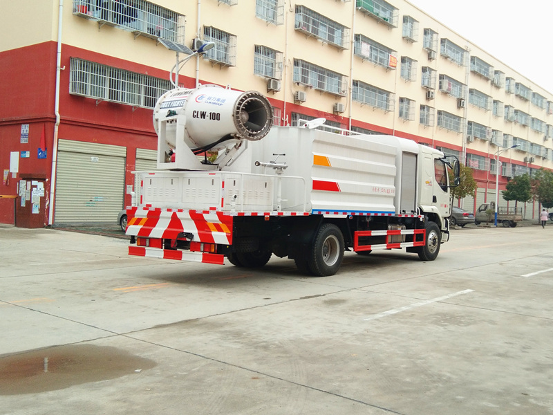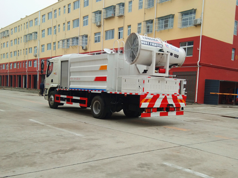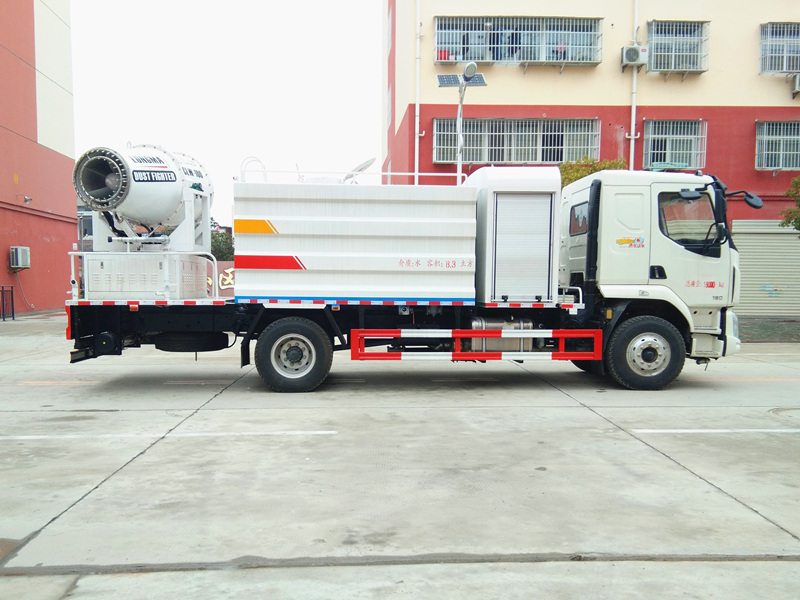 雾炮参数:雾炮射程从60米到120米,可随意选择,射程不同,价格也不同。雾炮自带柴油发电机组,标配100米以内摇控装置,可360度摇控旋转,达到全方位大面积精准喷雾,经环保部门测试,雾炮车可以将空气中的PM10浓度降低20%左右。该车负载的大型雾炮喷雾流量平均每分钟50-150升水。同样10吨水,该款新型雾炮车的洒水时间是普通洒水车的10-15倍,在雾霾天气可以进行液雾降尘、将漂浮在空气中的污染颗粒物迅速逼降地面,达到净化空气的效果。