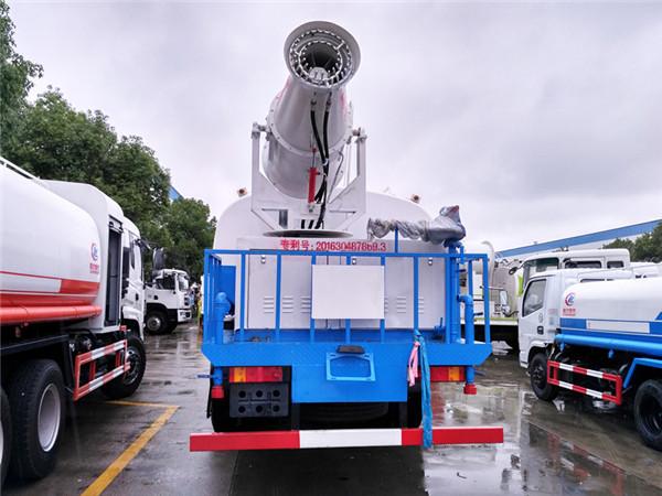雾炮参数:雾炮射程从30米到50米,可随意选择,射程不同,价格也不同。雾炮自带柴油发电机组,标配100米以内摇控装置,可360度摇控旋转,达到全方位大面积精准喷雾,经环保部门测试,雾炮车可以将空气中的PM10浓度降低20%左右。该车负载的大型雾炮喷雾流量平均每分钟50-150升水。同样10吨水,该款新型雾炮车的洒水时间是普通洒水车的10-15倍,在雾霾天气可以进行液雾降尘、将漂浮在空气中的污染颗粒物迅速逼降地面,达到净化空气的效果。