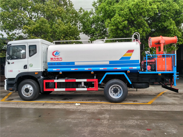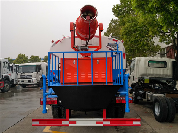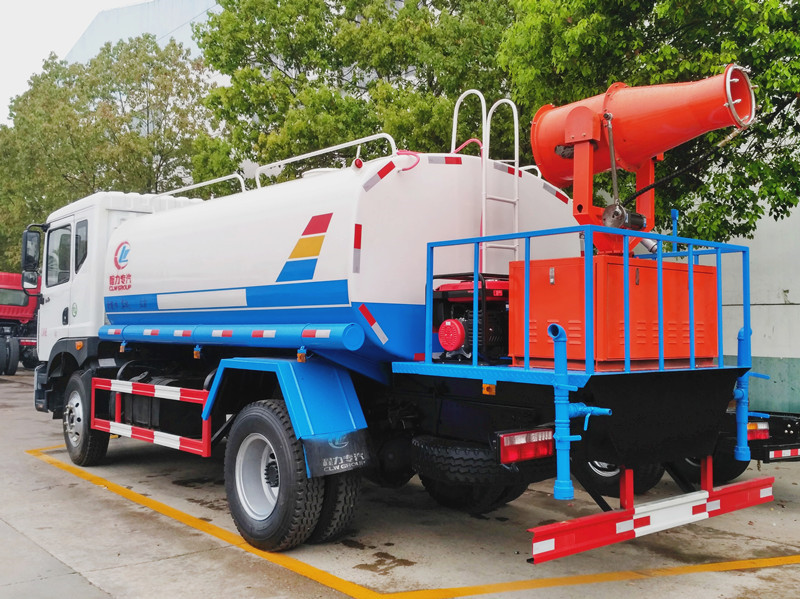 上装配置:罐体采用正宗国标4mm厚的优质碳钢板,罐体有效容积12吨,内部做防腐防锈,配大功率洒水泵。标配:前冲、后洒,侧喷,平台高炮,自流阀和消防接头各1个,水管2根,具有洒水车的全套标准功能,完美的实现了一车两用的效果。