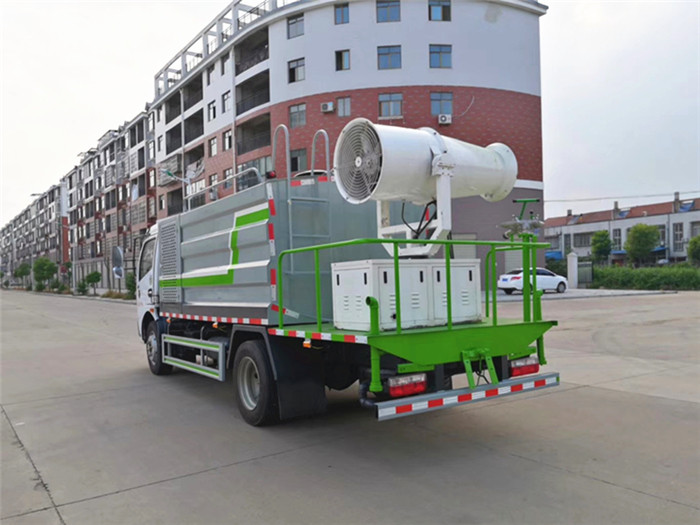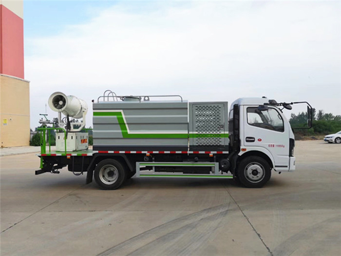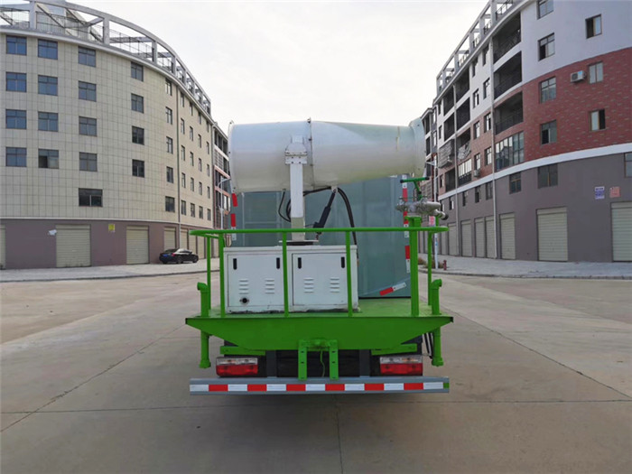 上装配置:罐体容积5立方,前(喷)后洒,带侧喷,罐体后带工作平台,平台上安装绿化洒水炮,洒水炮可全方位旋转,可连续调成直冲状、大雨、小雨、毛毛雨,带安全护栏,配大功率专用洒水泵,泵可自吸自排,安装过滤网,带消防接口,可通过消防栓进水,带自流阀。选装30-50射程雾炮。