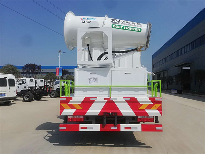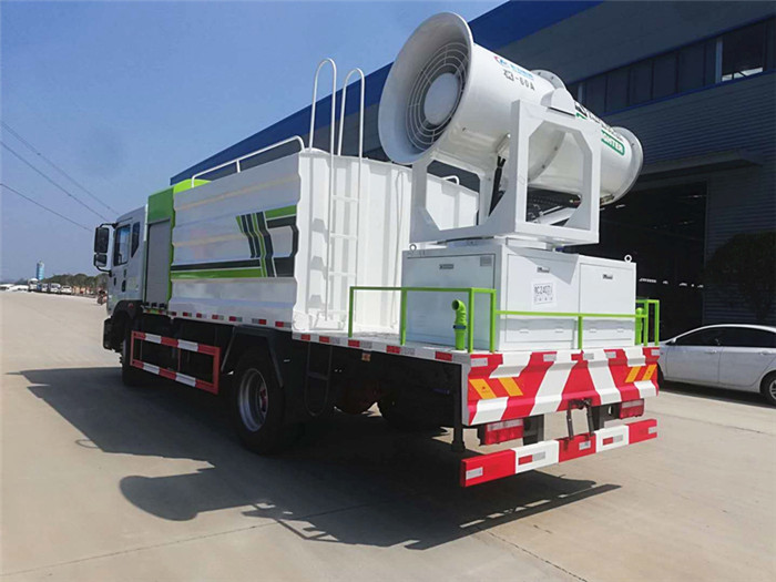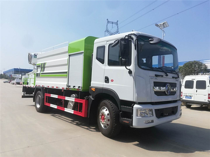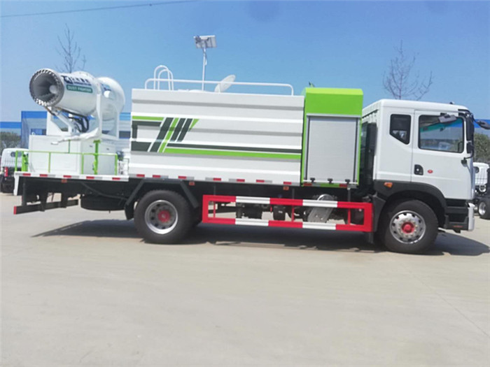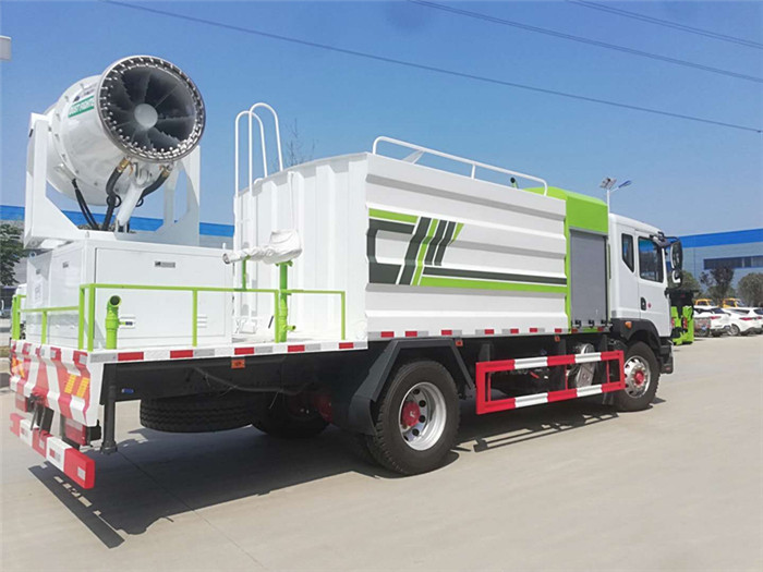 上装配置:罐体采用正宗国标5mm厚的优质碳钢板,罐体有效容积11吨,内部做防腐防锈,配大功率洒水泵。标配:前冲、后洒,侧喷,平台高炮,自流阀和消防接头各1个,水管2根,具有洒水车的全套标准功能,完美的实现了一车两用的效果。后平台选配50-100米喷雾机组。
