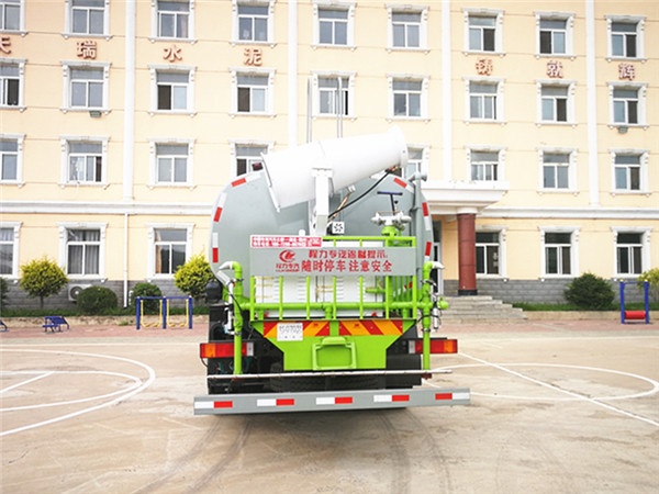 上装配置:罐体容积为 18立方,罐体钢板为5mm碳钢Q235材质,罐内隔板具有防波作用,以减轻汽车行驶时罐体液体冲击,罐体及整车外形尺寸按照公告。带大功率专用洒水泵,泵可自吸自排,整车前冲、后洒、侧喷、消防接口,后平台带绿化洒水炮,洒水炮可全方位旋转,可连续调成直冲状、大雨、小雨、毛毛雨;前封头带水位计,后平台主管路带1寸浇花接口,后爬梯。平台后部带小安全告知牌:“随时停车,注意安全”,带两根水管及阴阳端。洒水车可加装前冲后洒气动阀驾驶室控制、可加装雾炮机组发电机组喷雾降尘装置,此车装30米雾炮,选装其他射程雾炮来电咨询!