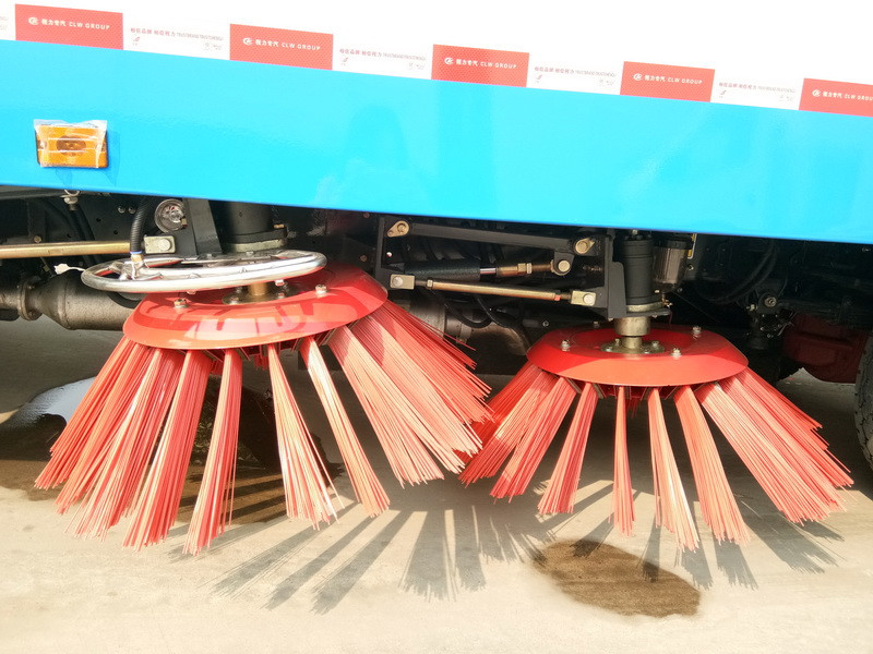 上装配置:副发动机江铃78马力        2.5方水箱    5方垃圾箱中置扫盘4把,副发动机康明斯140马力,不锈钢垃圾箱,不锈钢水箱,施耐德控件开关,台湾液压阀或海普瑞斯电磁阀组,长源液压油泵,新西山水泵,免维护自分离式离合器,免维护风机,尾部LED箭头灯,手动泵应急系统,前扫刷臂转动机构使用高新耐磨工程隔套,免打黄油。精密冷弯无缝液压油管。最大吸入粒度:110mm