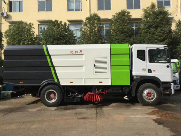 上装配置:中置扫盘4把,副发动机康明斯140马力,不锈钢垃圾箱,不锈钢水箱,施耐德控件开关,台湾液压阀或海普瑞斯电磁阀组,长源液压油泵,新西山水泵,免维护自分离式离合器,免维护风机,尾部LED箭头灯,手动泵应急系统,前扫刷臂转动机构使用高新耐磨工程隔套,免打黄油。精密冷弯无缝液压油管。清扫宽度:2.8--3.2米,最大吸入粒度:120mm